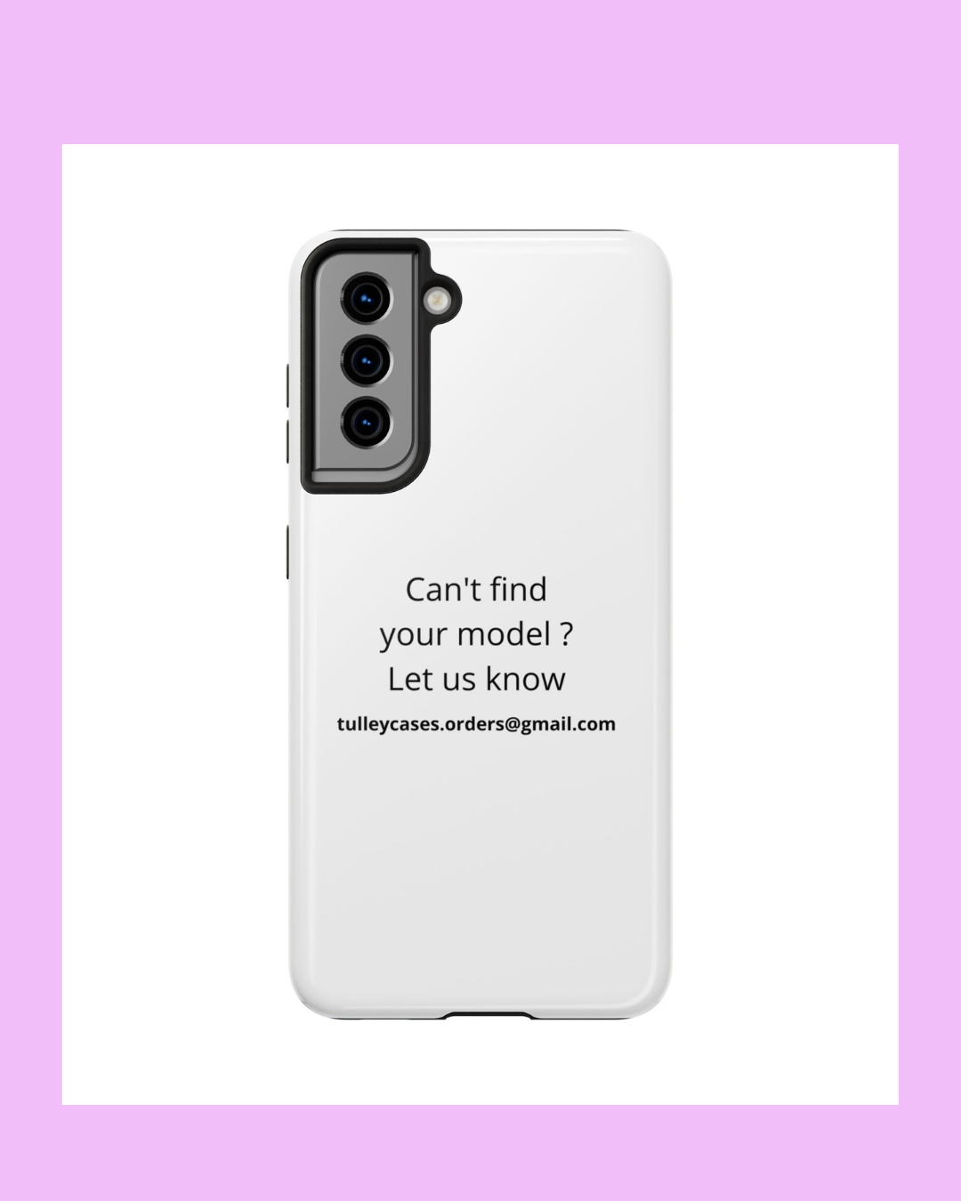 If you want a custom model or one for a phone you can't find, contact us: tulleycases.orders@gmail.com